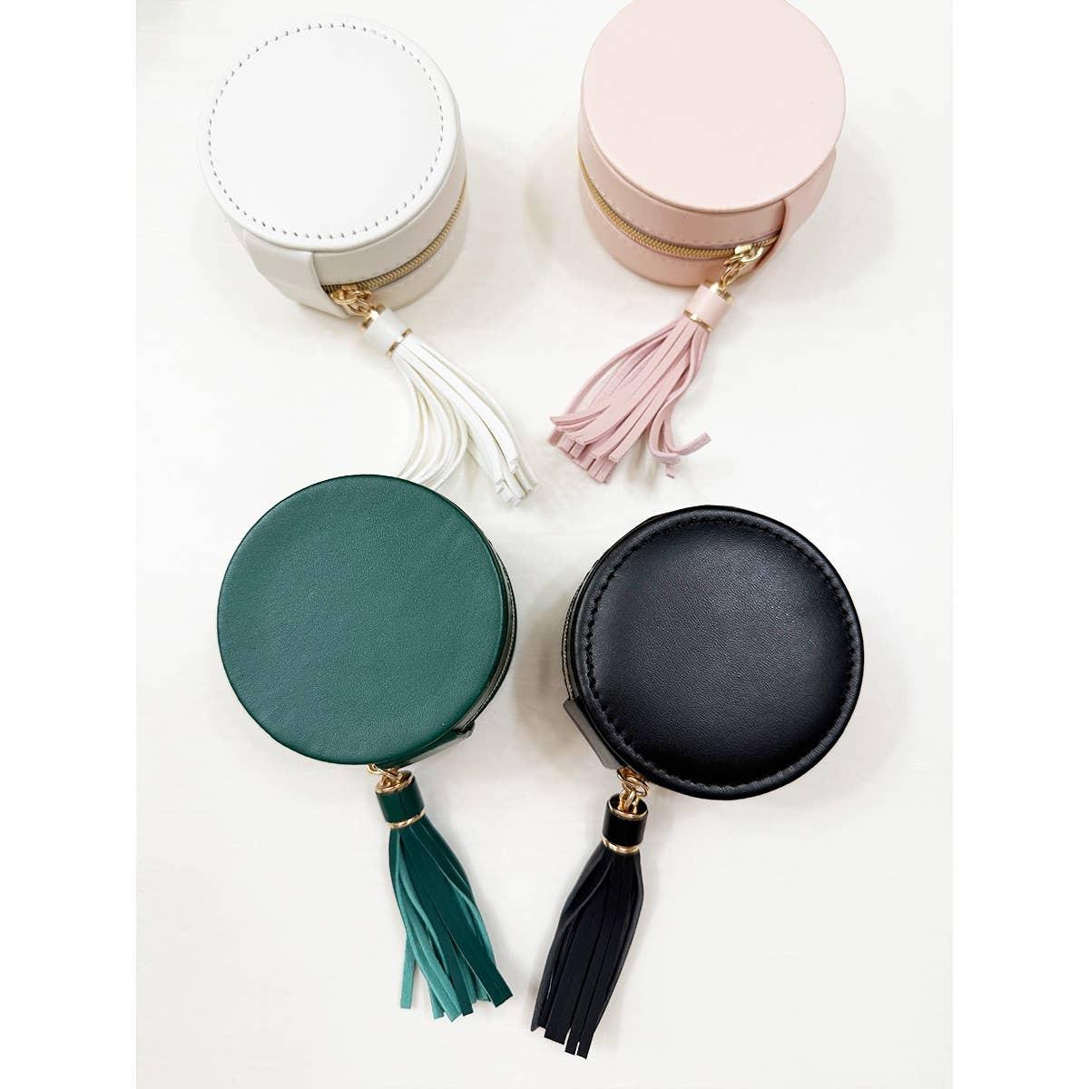Mini Travel Jewelry Case -The small and lightweight jewelry organizer box is the perfect gift for yourself, your friends, wife or mothers birthday, Christmas, Valentines Day, Mothers Day and anniversaries -Dimension- 3 Inch Radius X 2 Inch D -4 Color