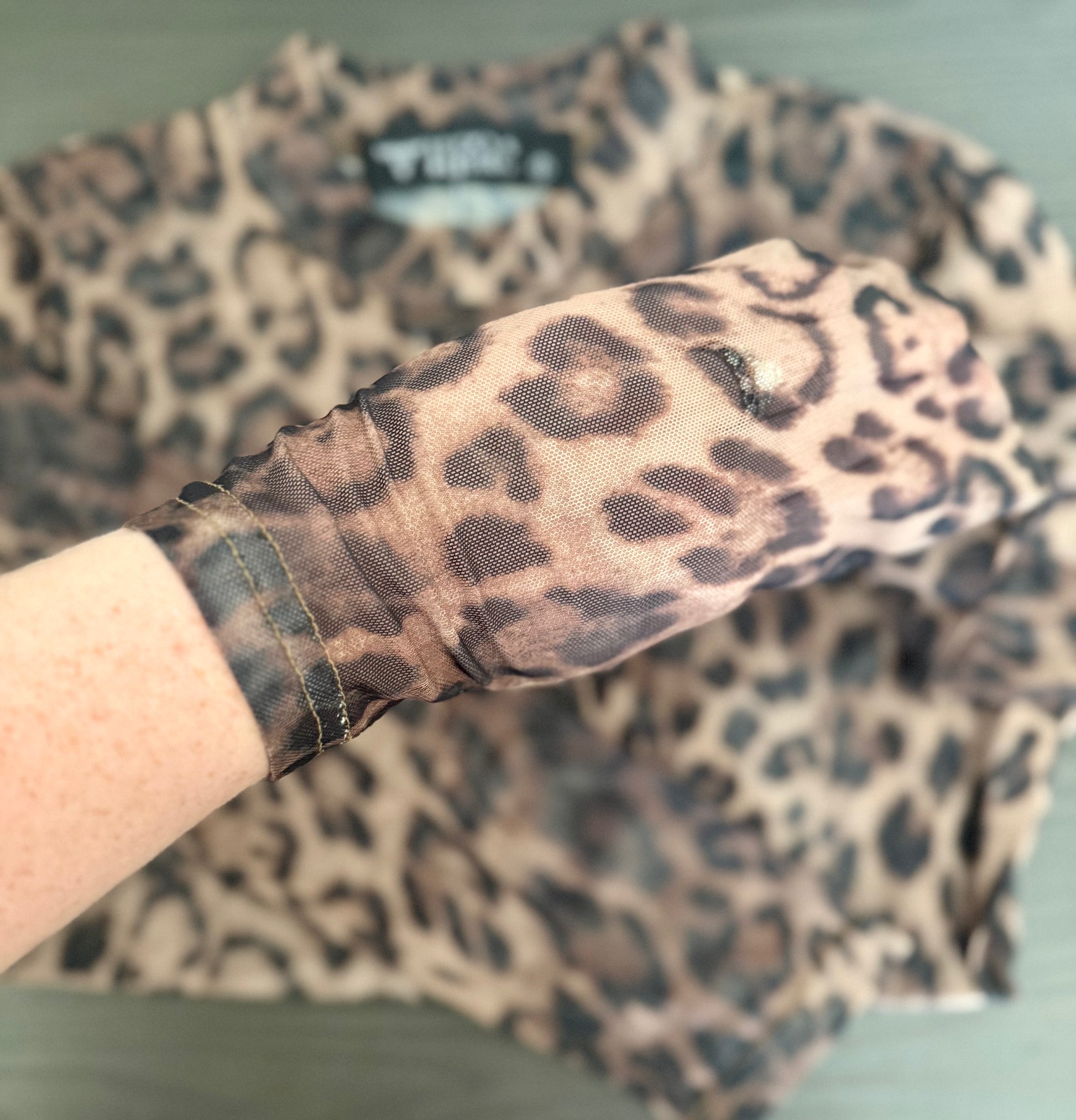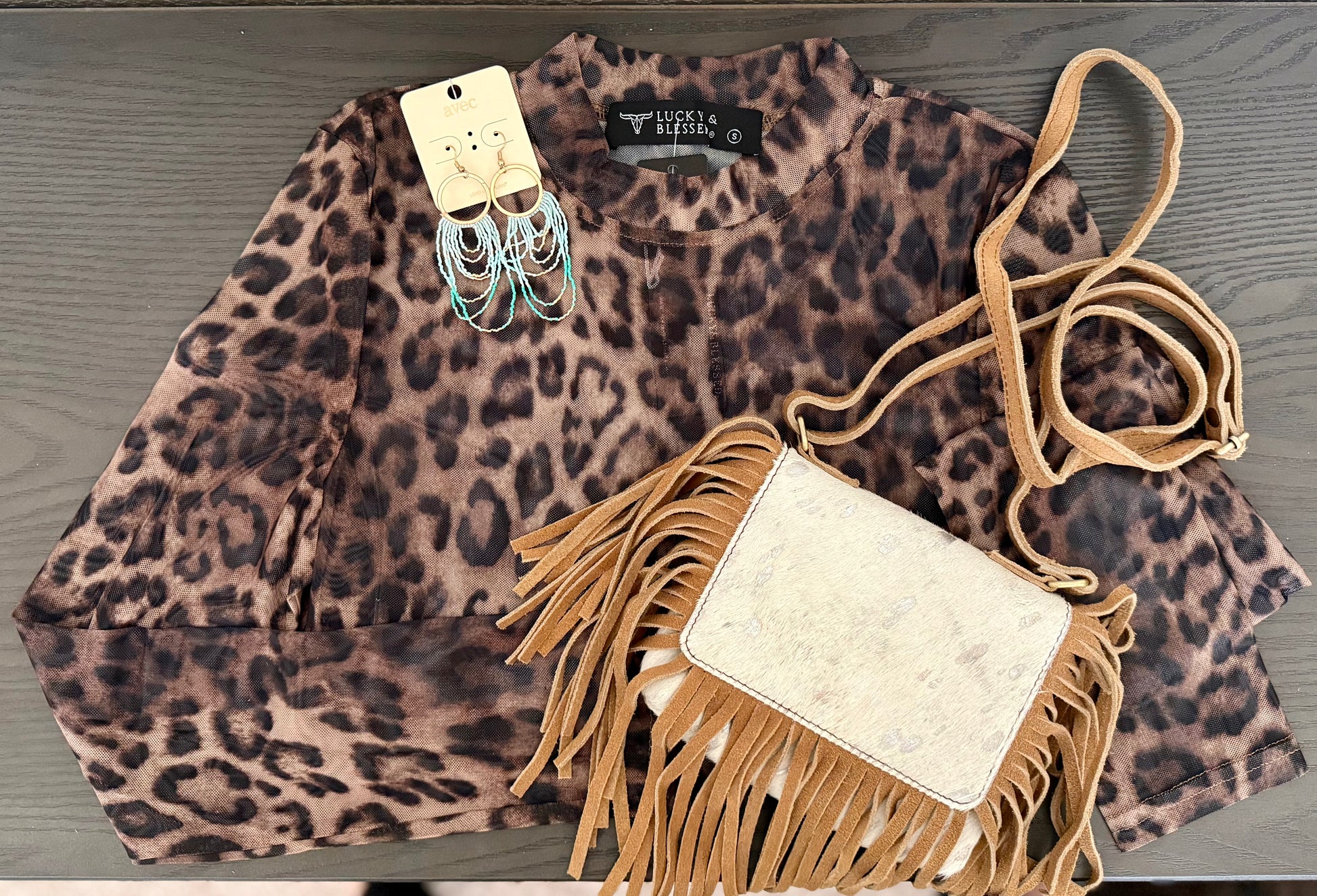 Unleash your wild side with the Sassy Leopard Mesh Top by Lucky & Blessed – a fierce blend of western charm and boutique-edge. Designed with a bold all-over leopard print, this sheer long sleeve blouse is made from breathable stretch mesh that hugs your curves while keeping things light and comfortable. The crew neckline and curve-contouring fit make it perfect for layering under vests, fringe jackets, or pairing with high-waisted denim and rodeo-ready accessories.