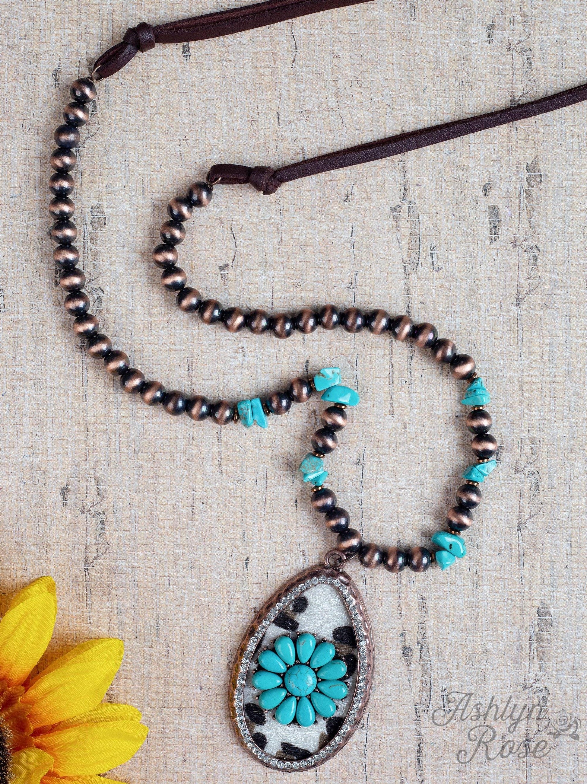 Turn heads with our Leopard Teardrop Necklace, accented with striking bronze and turquoise beads. The bold teardrop pendant adds a wild yet elegant touch, while the earthy bead details bring a hint of Southwestern charm. Perfect for layering or wearing solo, this necklace is a versatile piece that complements both casual and dressy looks.